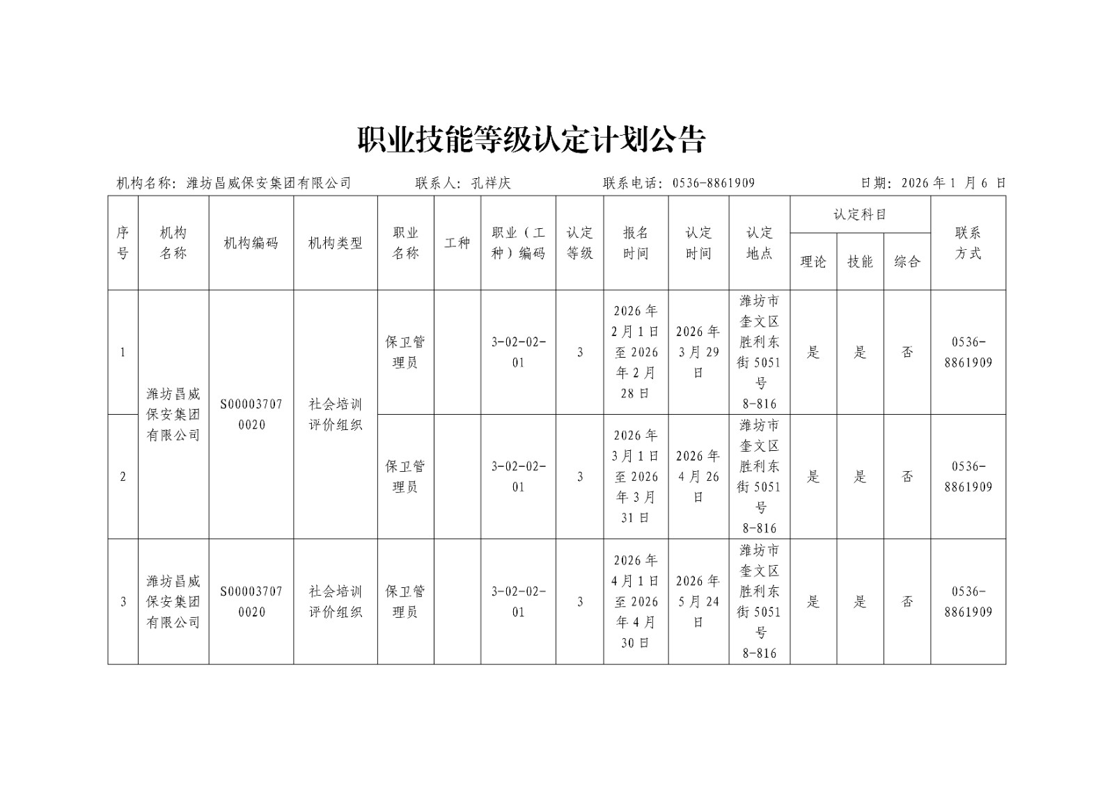 職業(yè)技能等級認定計劃公告